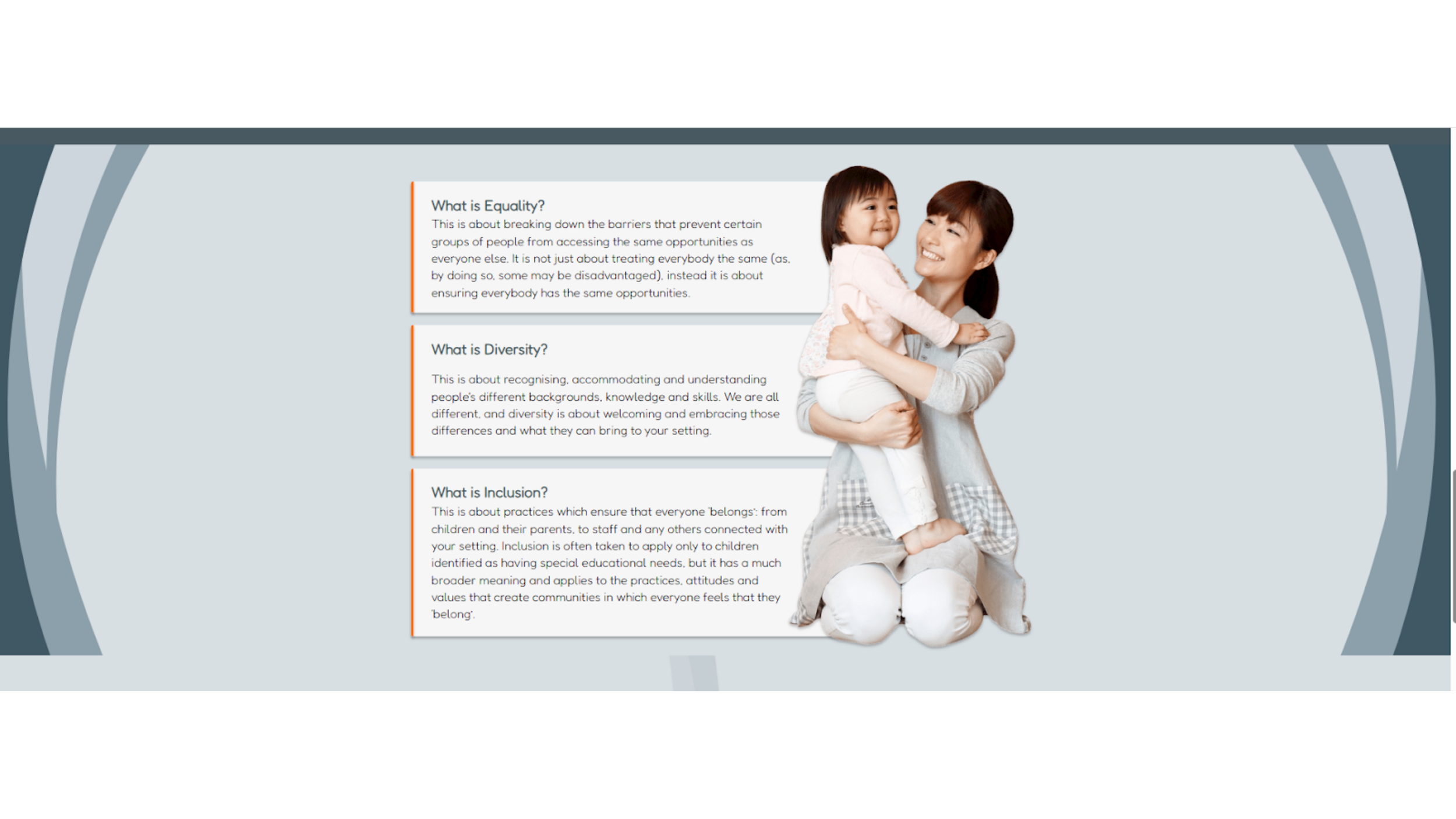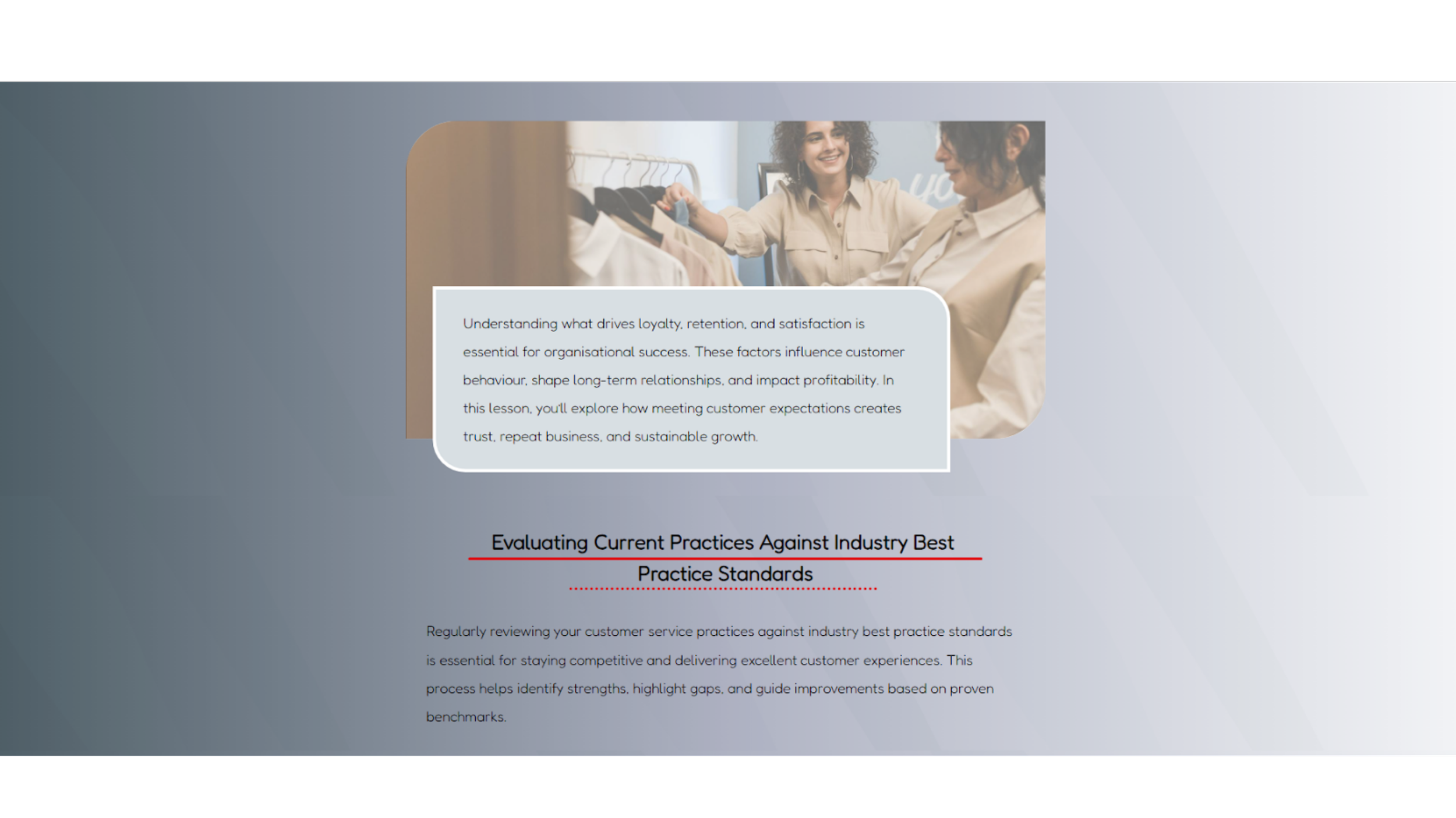 In redesigning the eLearning experience, I re-evaluated imagery through WCAG accessibility standards and core visual design principles.